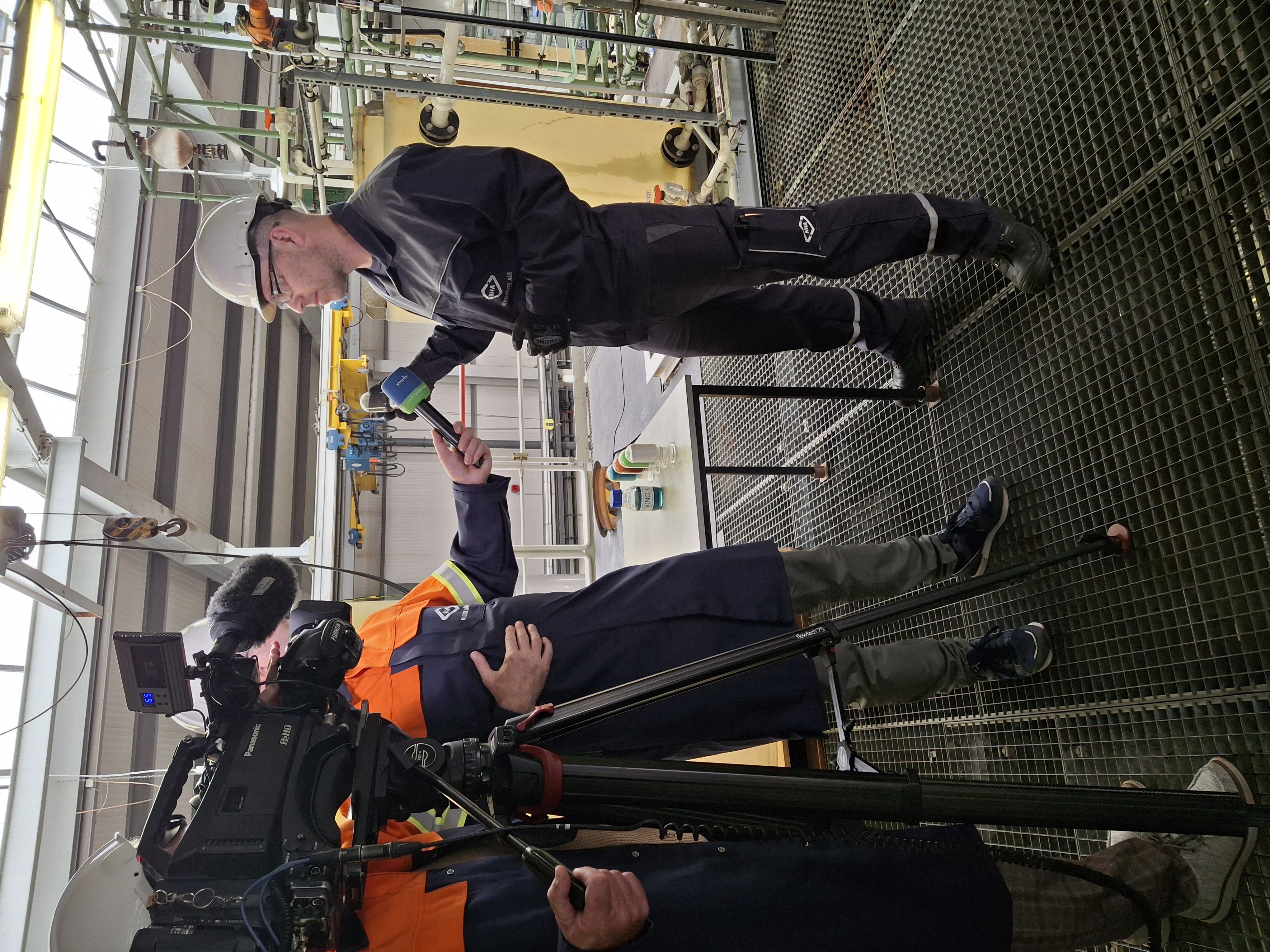 Abschließend hielt Clemens Kuhnert (Abteilungsleiter Rohstoffmanagement) einen kurzen Vortrag zum Thema Rohstoffsicherung durch lokales Recycling und half bei der Verteilung der Boxen an die Schüler. Im Nachgang zu dieser Veranstaltung erhielt das Filmteam des MDR die Erlaubnis für einen kurzen Einblick hinter die Kulissen unseres Unternehmens mit freundlicher Unterstützung durch Dr. Sebastian Bochmann (Abteilungsleiter Nassmetallurgie) sowie Clemens Kuhnert. Am Mittwoch, den 11.06.2025, um 19:00 Uhr wurde der TV-Beitrag auf MDR Sachsen veröffentlicht, ist bis zum 18.06.2025 in der ARD Mediathek abrufbar.